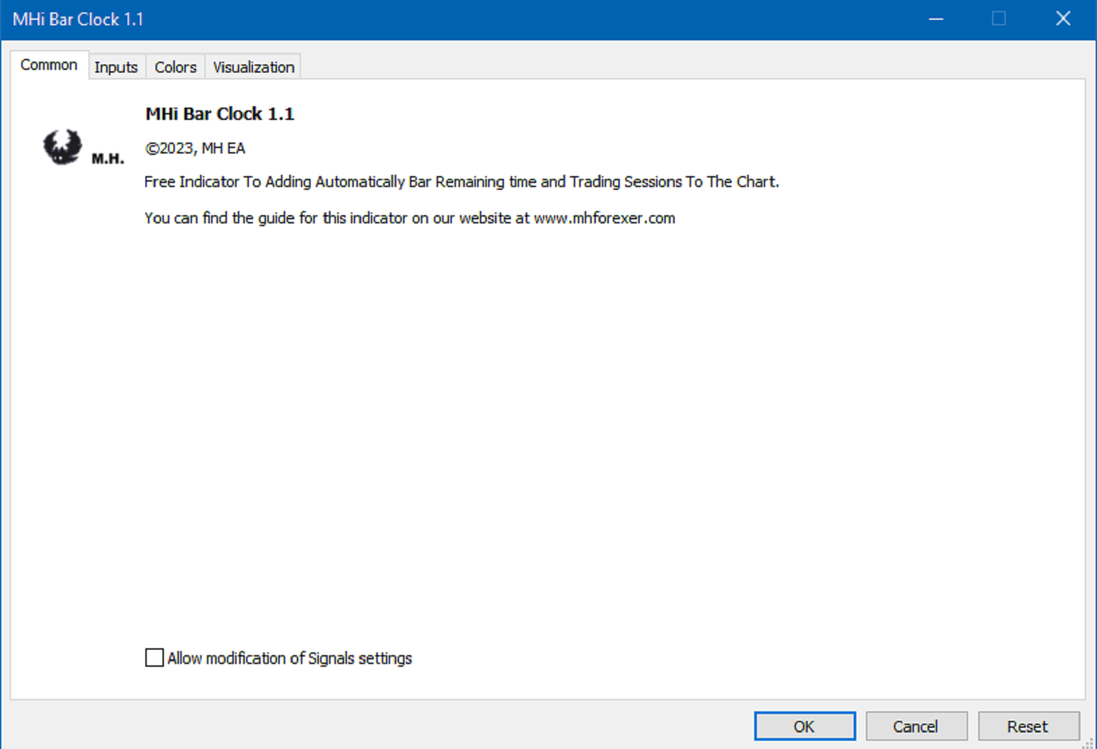 شکل 1 – در تب درباره اندیکاتور (About) مشخصات اندیکاتور و ورژن آن ذکر شده است.